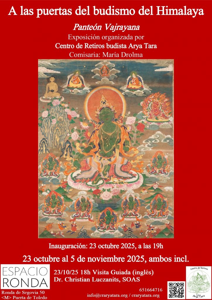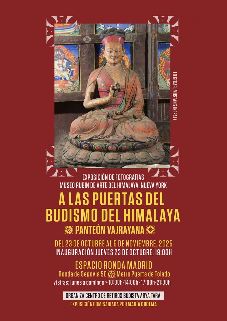 Es un gran honor hacer ya pública nuestra exposición organizada por el Centro de Retiros budista Arya Tara, comisariada por María Drolma, con veinte fotografías a color de obras budistas del Himalaya (Tíbet y Nepal) del Rubin Museum of Himalayan Art en Nueva York titulada A las puertas del budismo del Himalaya. Panteón Vajrayana.el próximo 23 de octubre al 5 de noviembre 2025, ambos días inclusive en Espacio Ronda.